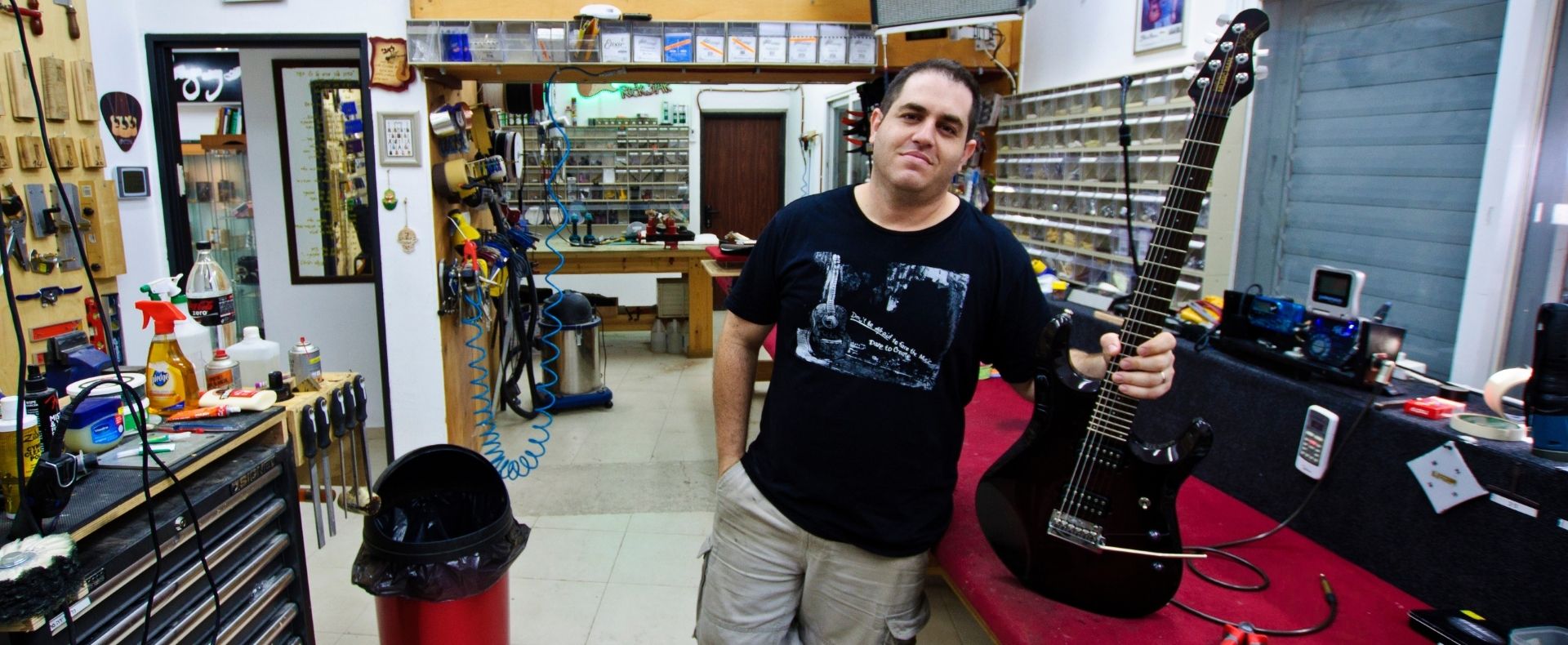 שנפלה בחלקנו לעבוד במקצוע המופלא הזה. הצוות שלנו מורכב מאנשי המקצוע הטובים בתחומם ואנו נשמח לעזור ולהעמיד לשירותכם את כל הידע והניסיון שצברנו במשך לשירותכם את כל הידע והניסיון שצברנו במשך שנים רבות של עבודה מקצועית בתחום הגיטרות והכל עם חיוך, רצון טוב ובגובה העיניים.