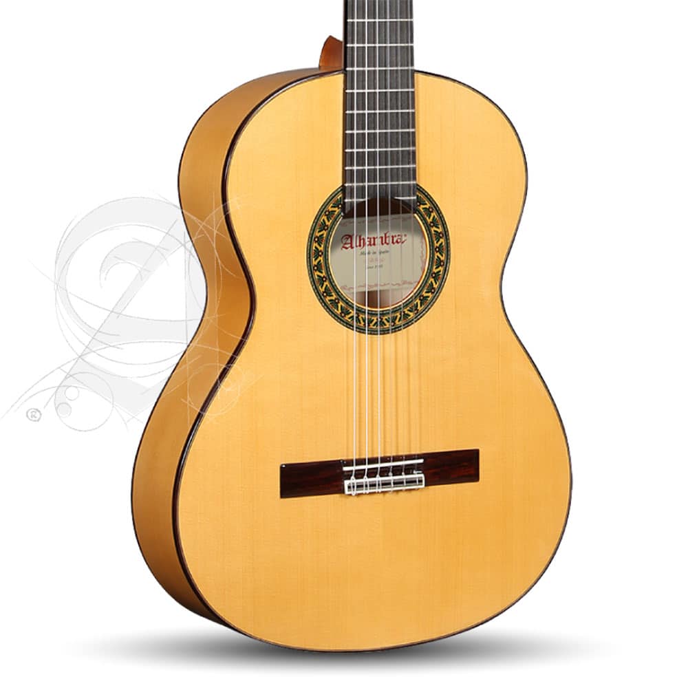 גיטרת הפלמנקו 5F של חברת אלהמברה היא גיטרה ורסטילית במיוחד במחיר נוח, בעלת גב וצדדים עשויים עץ שקמה ולוח תהודה העשוי אשוח גרמני מובחר, שמעשיר את הצליל ומעמיק את גווניו, נוסף על המראה הבהיר והאסתטי שלו אשר מובלטים בגימור מבריק, יחד עם מראה נוצץ ויפהפה. כל פרט בגיטרה זו נועד לשפר את רמת הביצוע והביטחון של כל נגן.ית, החל מבחירת העצים ועד לעיטורים ויציבות מפתחות הכיוון. הנאט והגשר עשויים חומר מלאכותי ויציב בהרבה מהעצם המסורתית, מה שמבטיח בהירות צליל ואיזון רב.