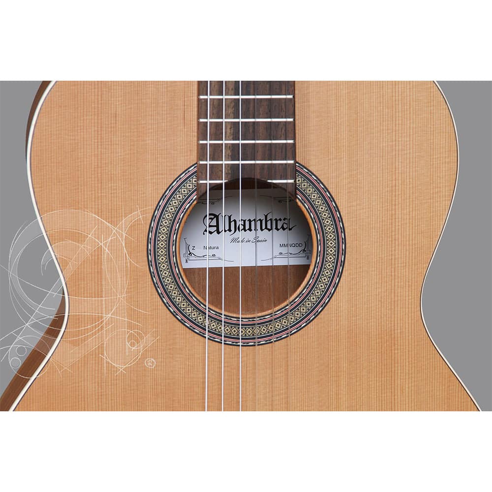 גיטרה קלאסית מדגם Z Nature של חברת אלהמברה, נוצרה במיוחד עבור נגנים מתחילים שעושים את צעדיהם הראשונים בעולם הגיטרה, אבל לא מעוניינים להתפשר על איכות הצליל והכלי. לוח התהודה עשוי ארז מלא, בעוד גב וצדדי הגיטרה עשויים מהגוני, לגיטרה צליל חם, בהיר ומאוזן, ומחירה מתאים לכל כיס על מנת להנגיש את עולם הגיטרה הקלאסית לכל אחד.ת. הנאט והגשר עשויים חומר מלאכותי ויציב בהרבה מהעצם המסורתית, מה שמבטיח בהירות צליל ואיזון רב.