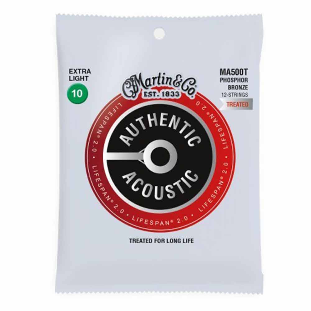 סט מיתרים לגיטרה אקוסטית 12 מחתרים מרטין Martin MA500T 80/20 Bronze Treated 12String Acoustic Guitar Strings - 11-52