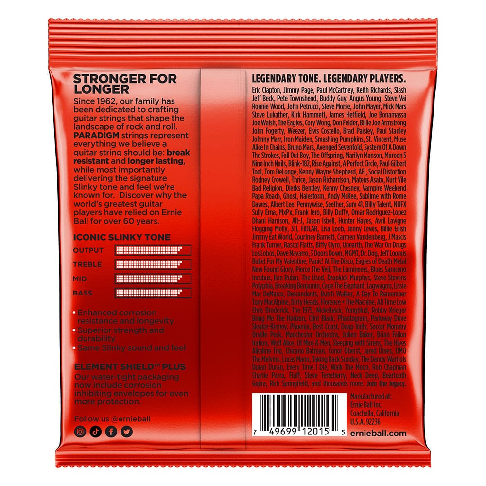 מיתרי ה-Paradigm של ארני בול Earnie Ball מספקים עמידות ואורך חיי מיתר שטרם נראו בעולם, תוך שמירה על מאה אחוז מהטון והתחושה של מיתרי הסלינקי Slinky האהובים.